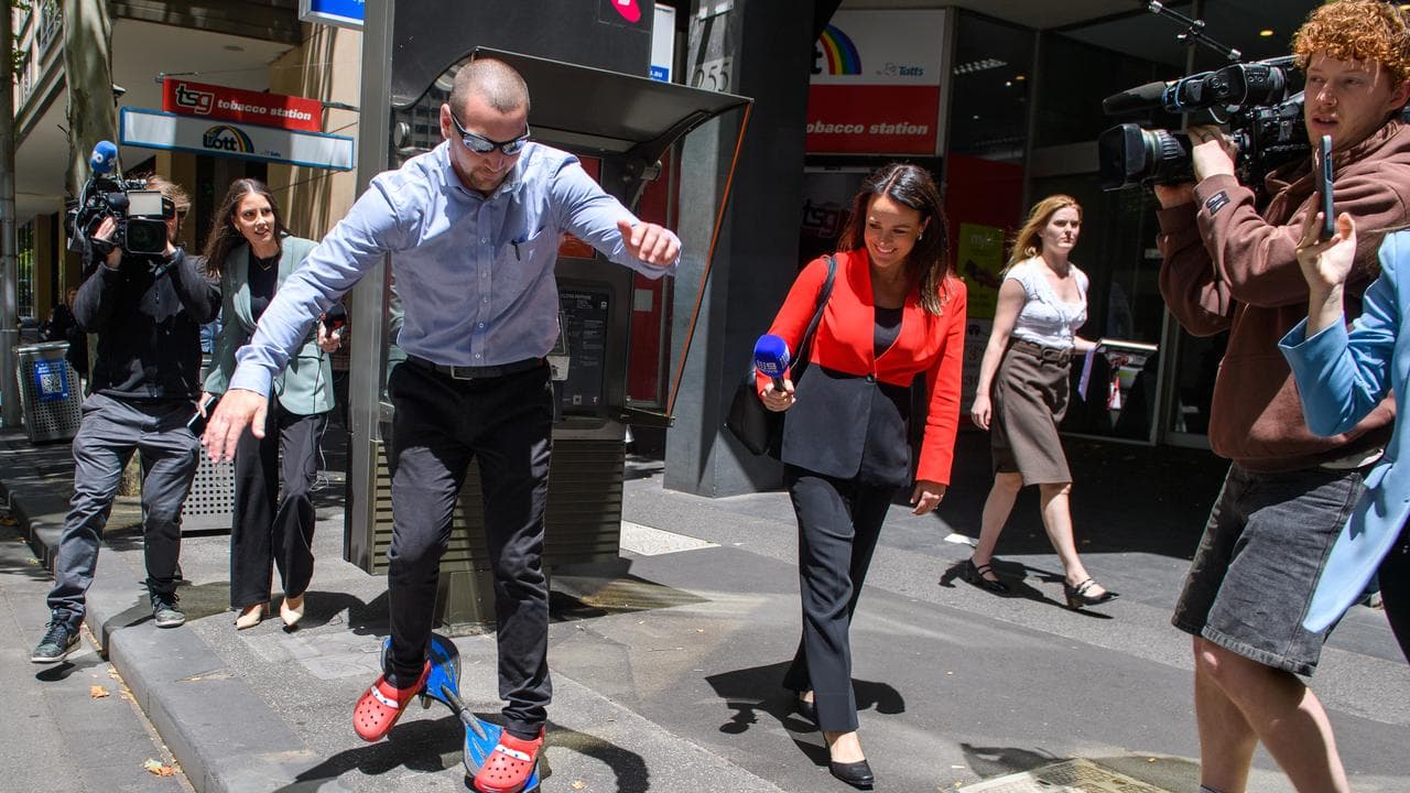 He declined to speak as he precariously travelled down Williams Street towards Flagstaff Station.