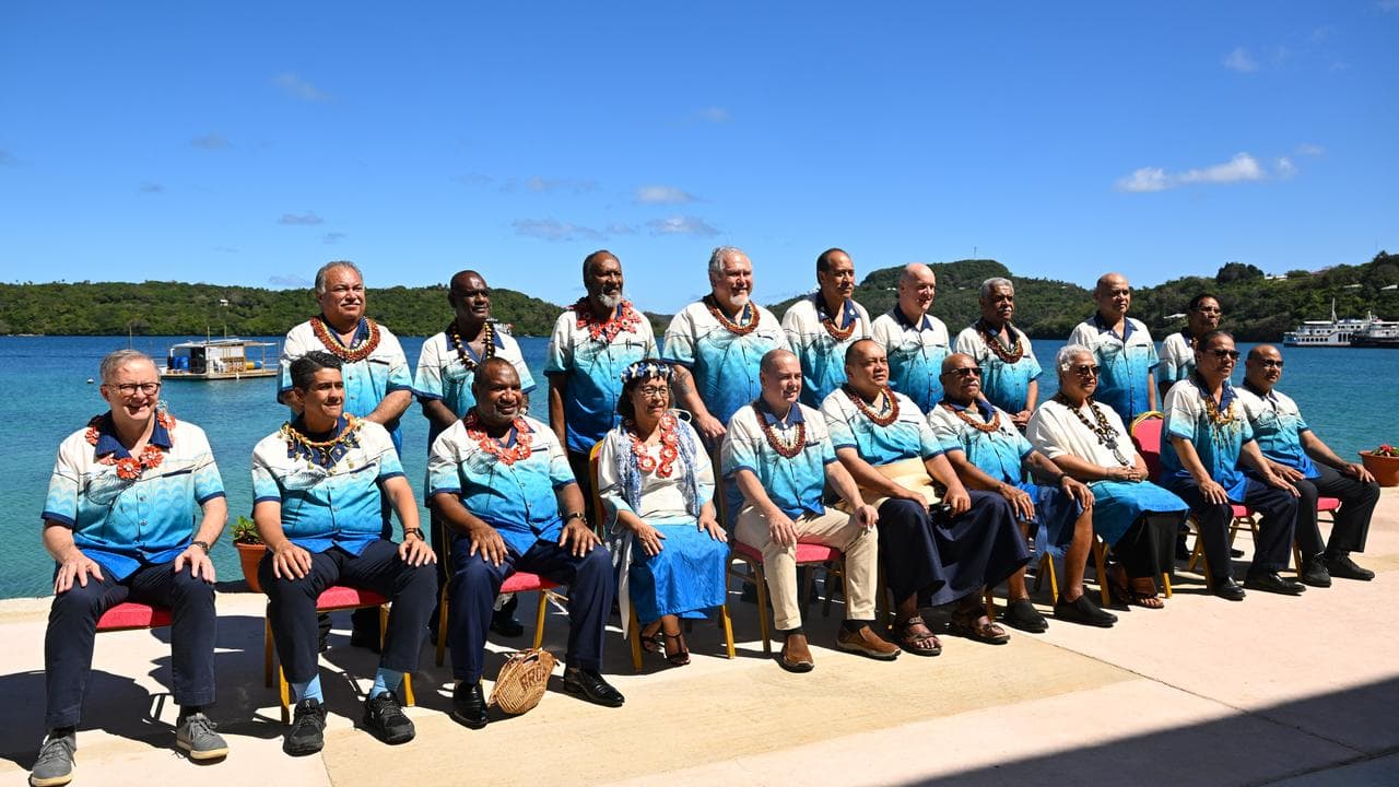 Pacific leaders were left waiting in the hot sun for the traditional family photo by Mr Albanese, who was late to take his place.