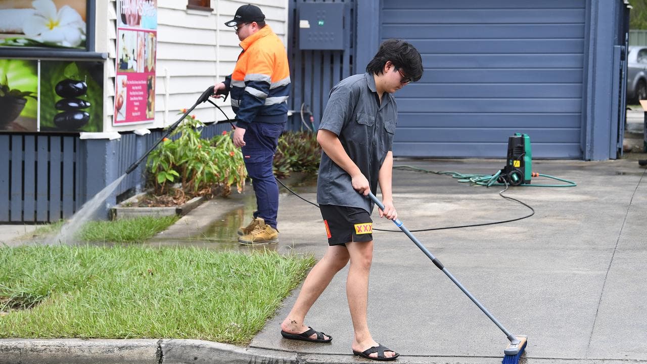His home in Oxley, south of Brisbane, is being worked over as the clean-up begins in ex-tropical cyclone Alfred's wake.