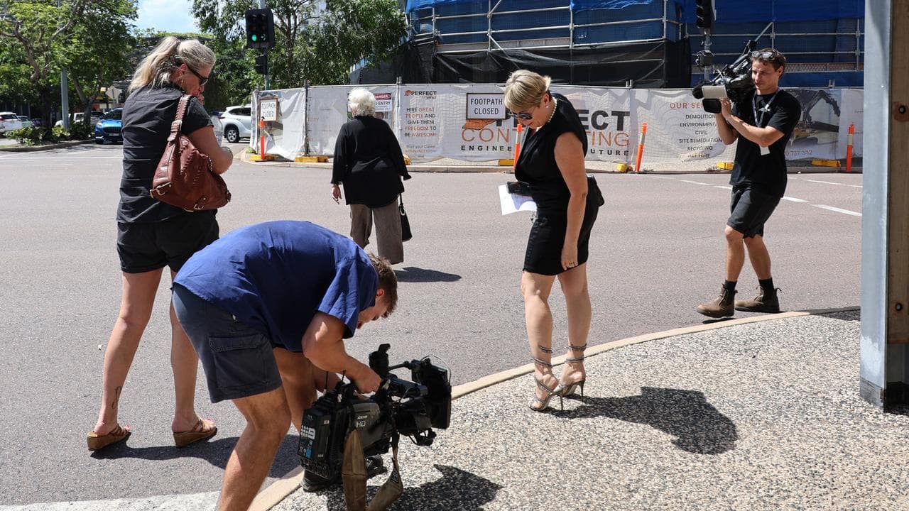 She stopped to show the cameras her bejewelled stilettos and praised the media for being her "favourite people in Darwin" before walking off.