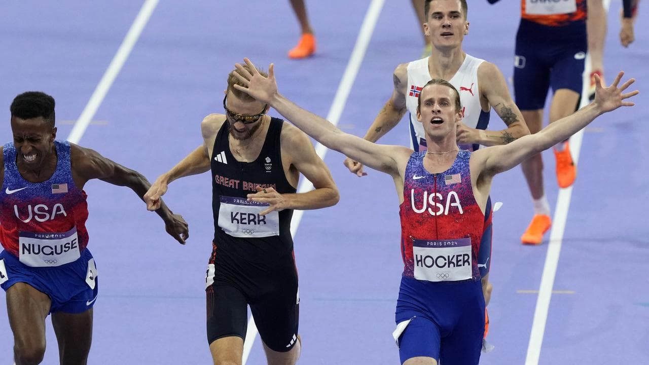 But it was 23-year-old Hocker who was fastest when it mattered most, flying home on the inside to win in an Olympic record time of three minutes 27.65 seconds, slashing more than three seconds off his personal best.