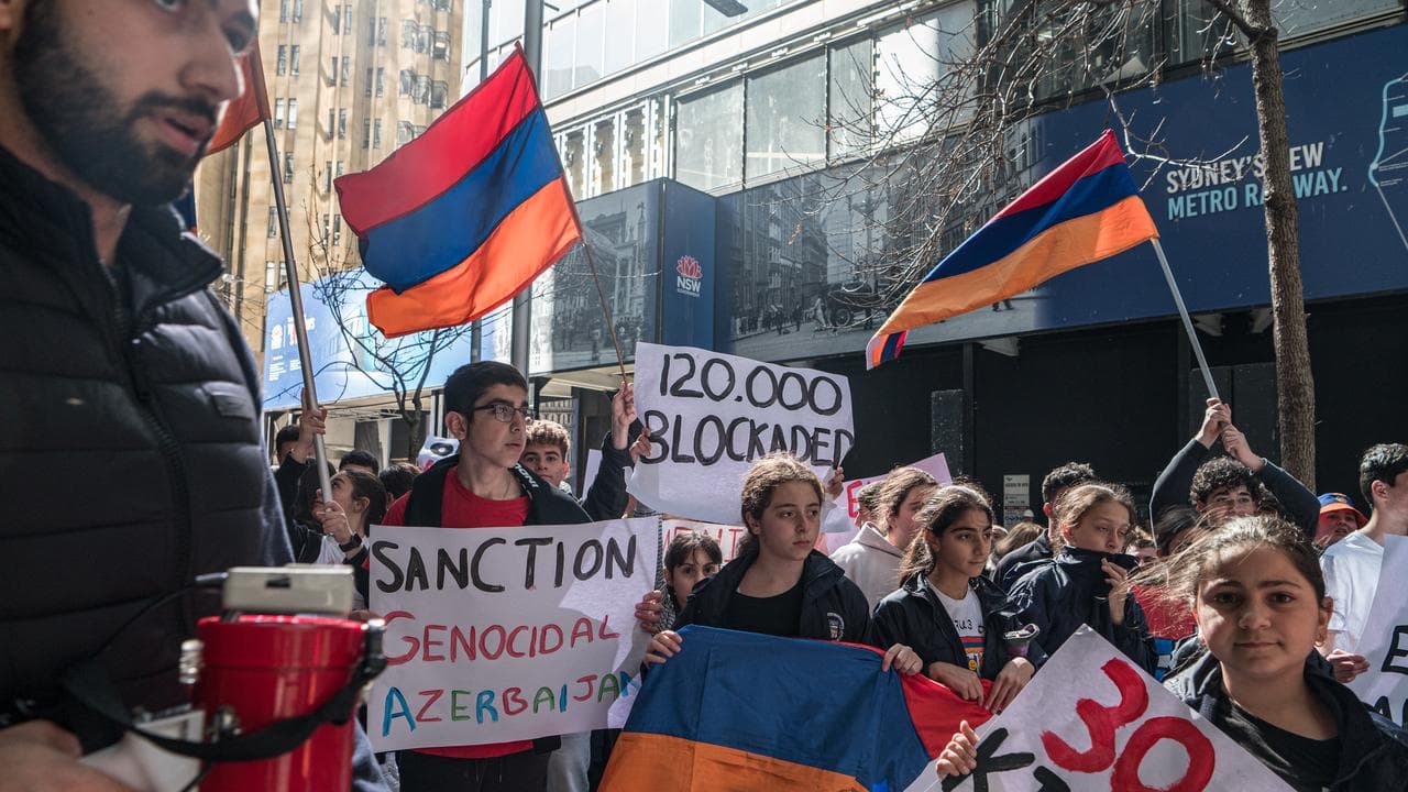 Hundreds of Australia's Armenian diaspora have called on the government to increase pressure on Azerbaijan to lift a nine-month blockade over the disputed Nagorno-Karabakh territory that has left thousands starving.