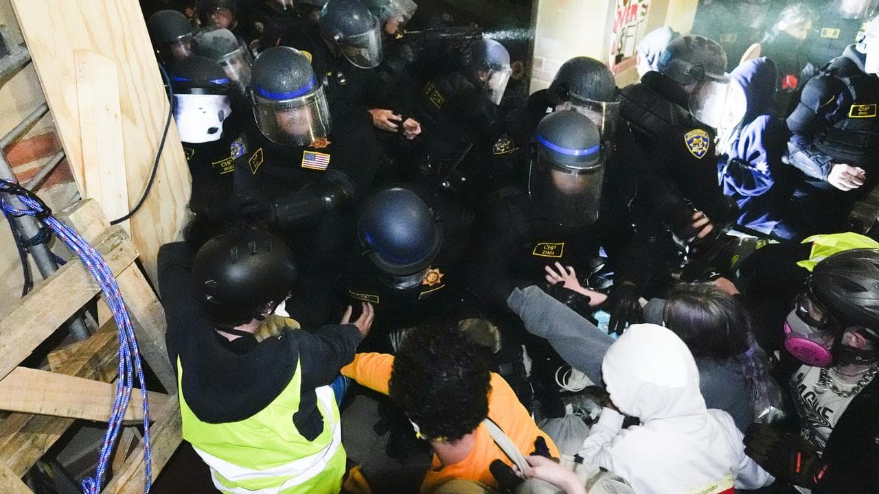 Wednesday night's police action came a day after police in New York City arrested pro-Palestinian activists who occupied a building at Columbia University and removed a tent city from its campus.