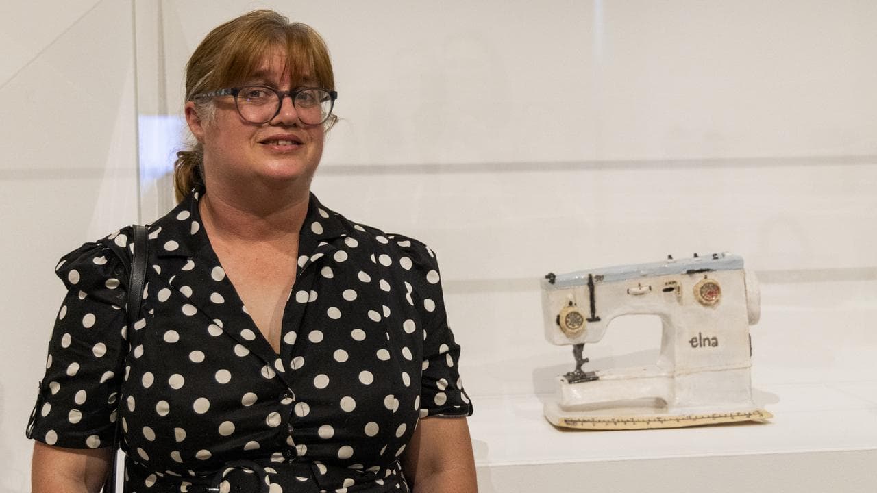 The meticulously constructed 1971 Elna, complete with foot pedal, electrical cord, scissors and spools, is on show at the TarraWarra Museum of Art outside Melbourne.