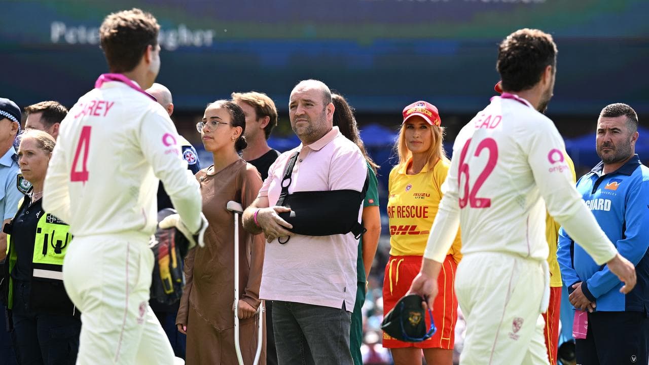 The sold-out crowd's voice rose as Ahmed Al Ahmed, his arm in sling and his hand on his heart, strode onto the pitch just before play began on day one at the SCG.
