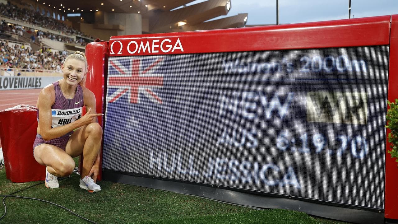 Jess Hull has smashed the women's world record in the 2000 metres at the Monaco Diamond League meeting with another stunning display that reaffirms her as a genuine Olympic medal contender.