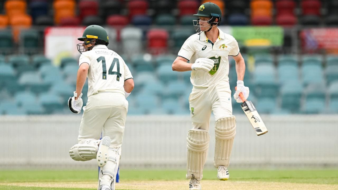 South Australia quick Jordan Buckingham (5-80) was the PM’s XI best bowler, completing his haul courtesy of a sharp catch from Renshaw at leg-gully to dismiss Hamza (eight).