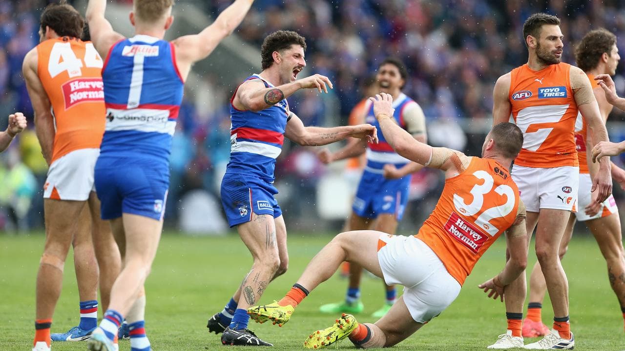 Toby Greene goaled after the siren to cut the deficit to 11 points at three-quarter-time, but four consecutive Bulldog goals in the fourth quarter iced victory.