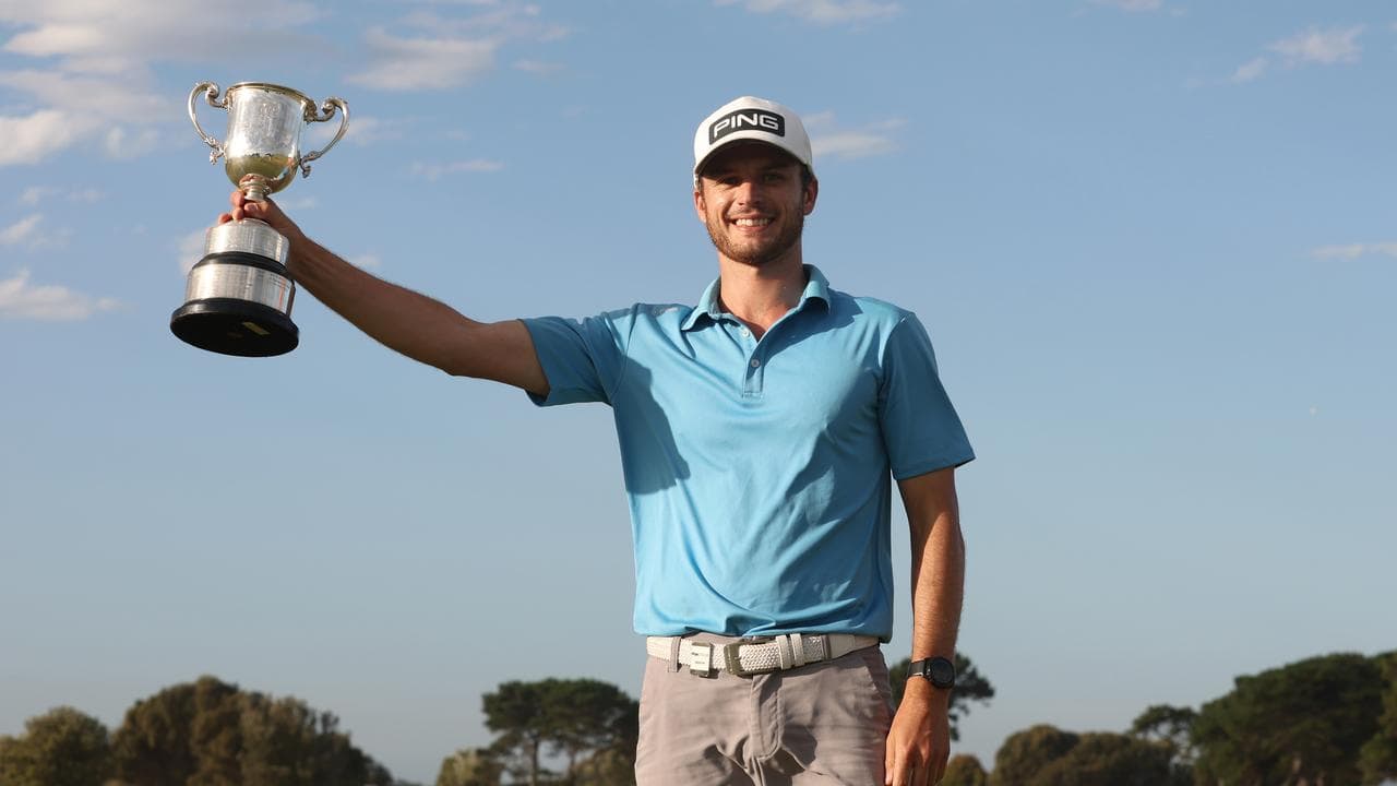 The 27-year-old Victorian stormed home with a seven-under 65 including an eagle and six birdies at Thirteenth Beach on Sunday to claim the biggest title of his career by two shots.
