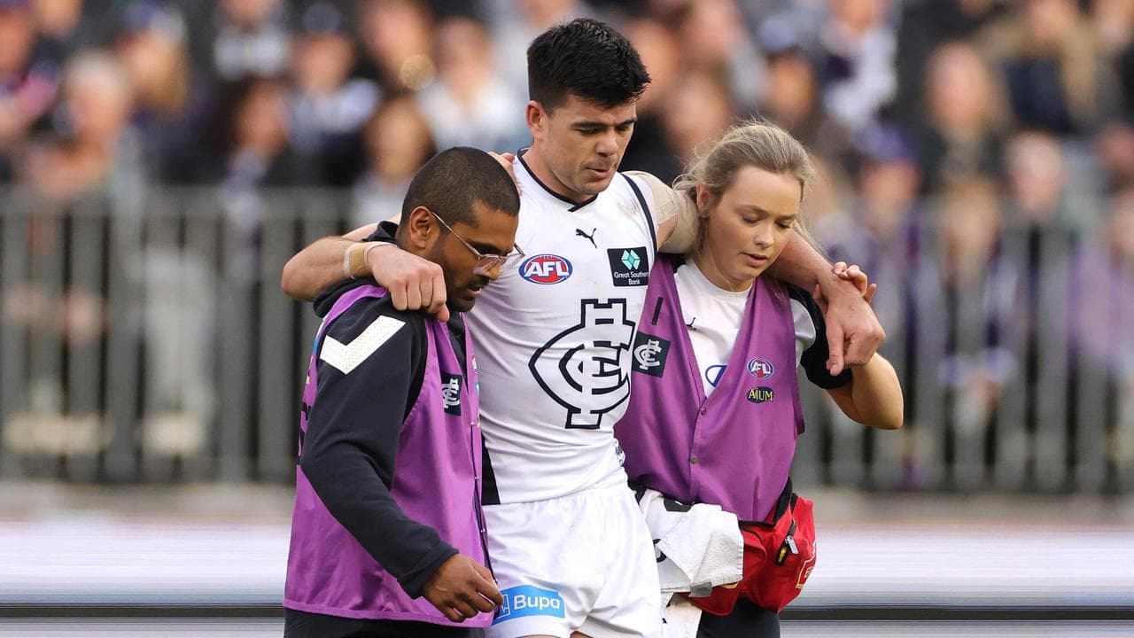 Kennedy was helped off the ground by two trainers after hurting his knee in the third quarter of Carlton's 53-point win over Fremantle on Sunday.