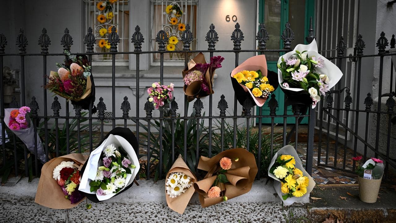 Multiple floral tributes have been laid outside the Paddington terrace where Mr Baird lived, and police allege the murders took place.