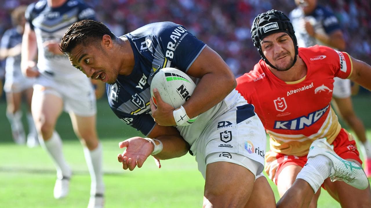 The Papua New Guinea international sliced through feeble defence to open the scoring in the second minute and trampled Dolphins half Sean O'Sullivan to set up winger Kyle Feldt under the posts after half-an-hour.