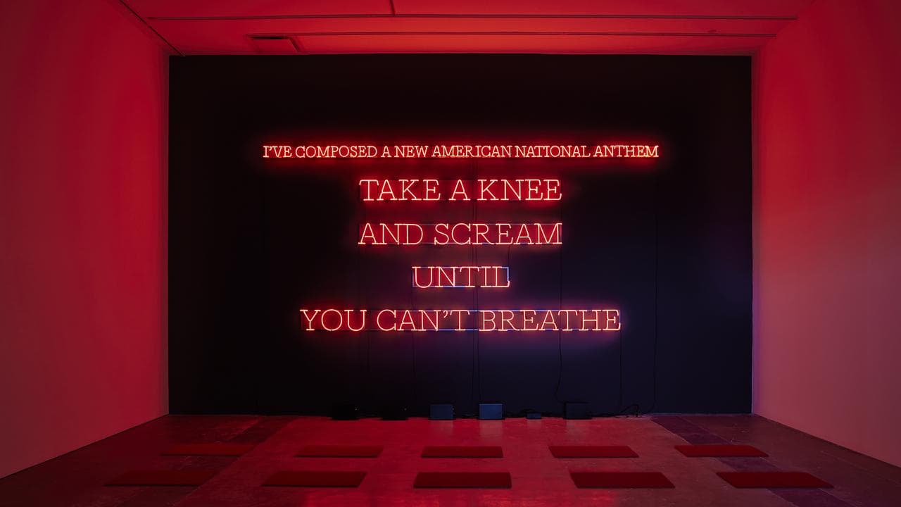 "I've composed a new American national anthem," the artwork's neon capital letters read.