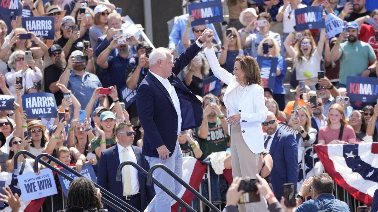 Democratic presidential candidate Kamala Harris and her new running mate Tim Walz have kicked off a rally in the battleground state of Wisconsin, the first of two stops that could offer an early test of Walz's Midwestern credentials.