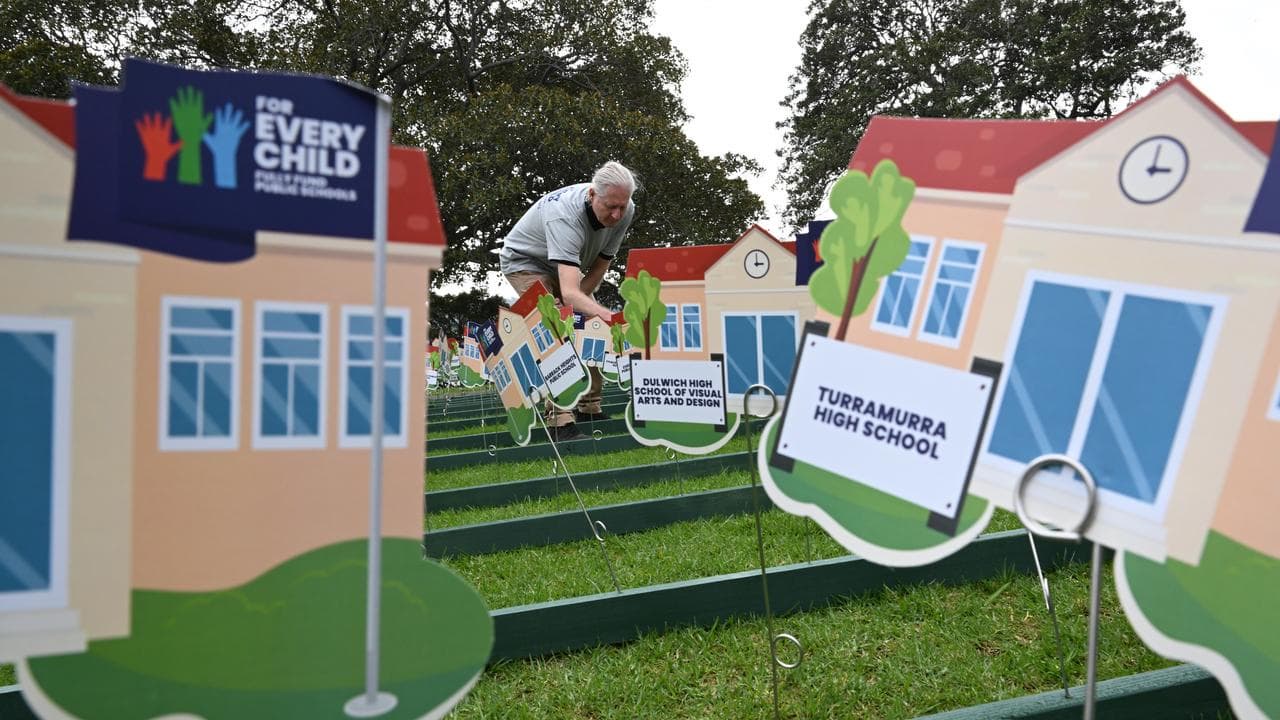 The Australian Education Union said the display represented the "alarming" 2154 public schools in the state that were receiving less than their needs-based funding requirements.