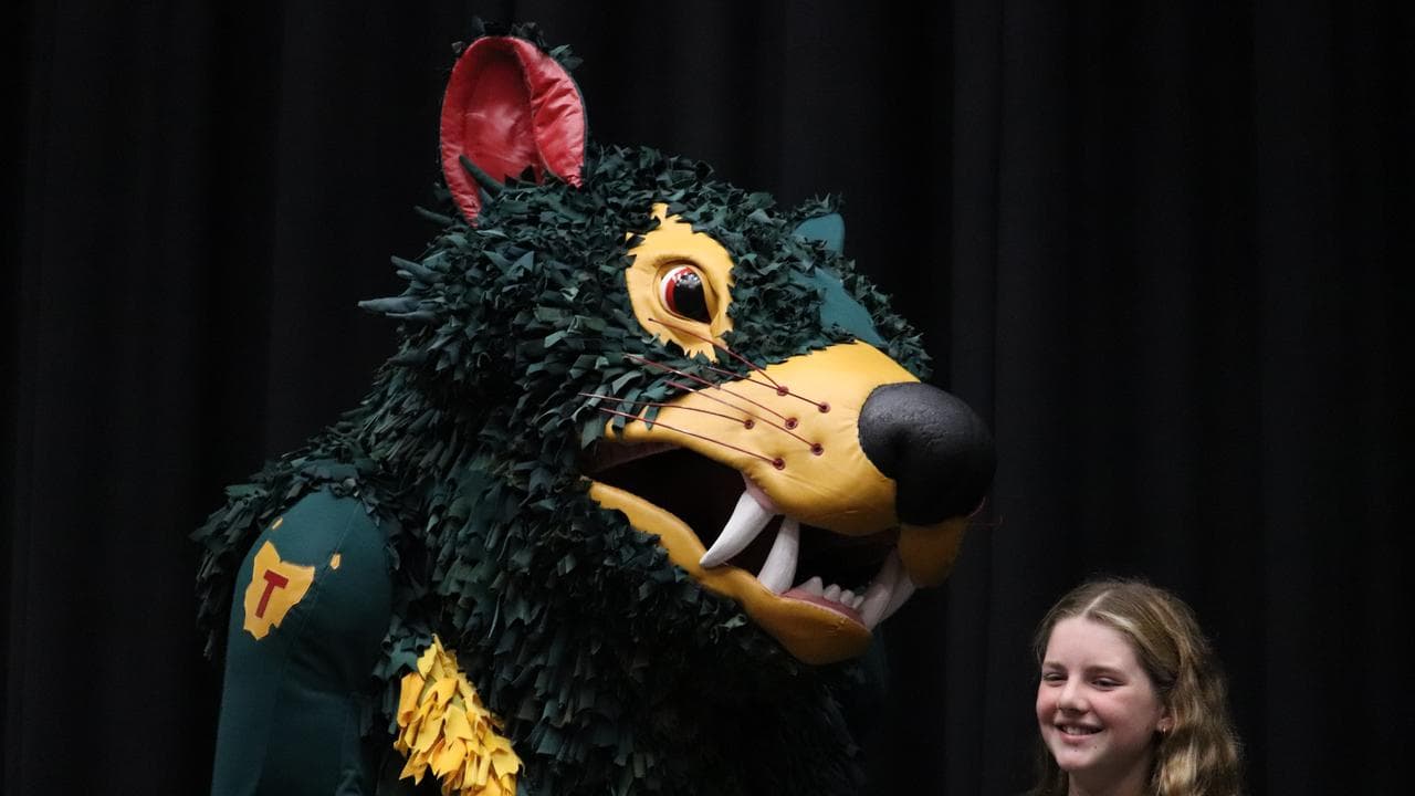 The Devils unveiled their first mascot, named Rum'un, in Hobart on Tuesday - the one-year anniversary of the team's official launch.