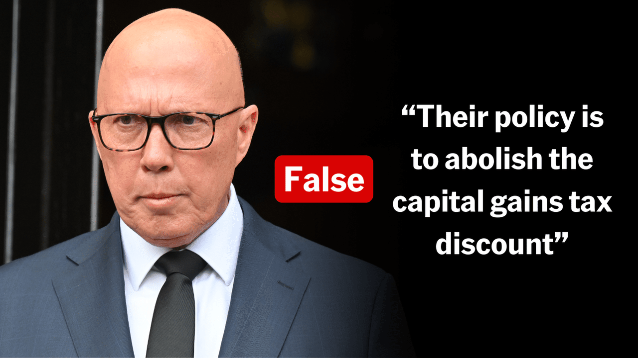 AAP FACTCHECK - Peter Dutton is falsely claiming Labor has a policy to axe the capital gains tax discount.