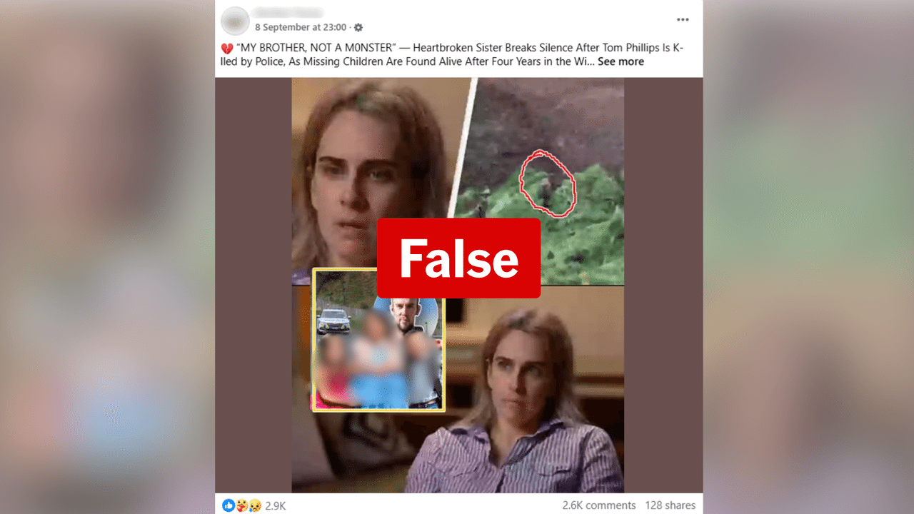 AAP FACTCHECK - Fake quotes attributed to the family and children of New Zealand fugitive Tom Phillips are being shared on social media in an apparent attempt to generate clicks and engagement.
