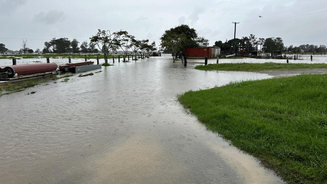 Exhausted cattle and sodden grass can be seen across farmland on NSW's mid-north coast, which has borne the brunt of deadly floods.