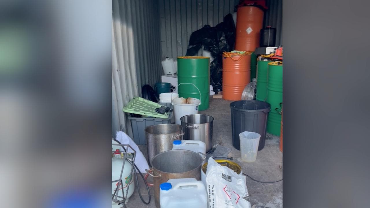 They also found a shipping container that contained chemical drums, manufacturing equipment and 20 kilograms of relevant chemical substances.