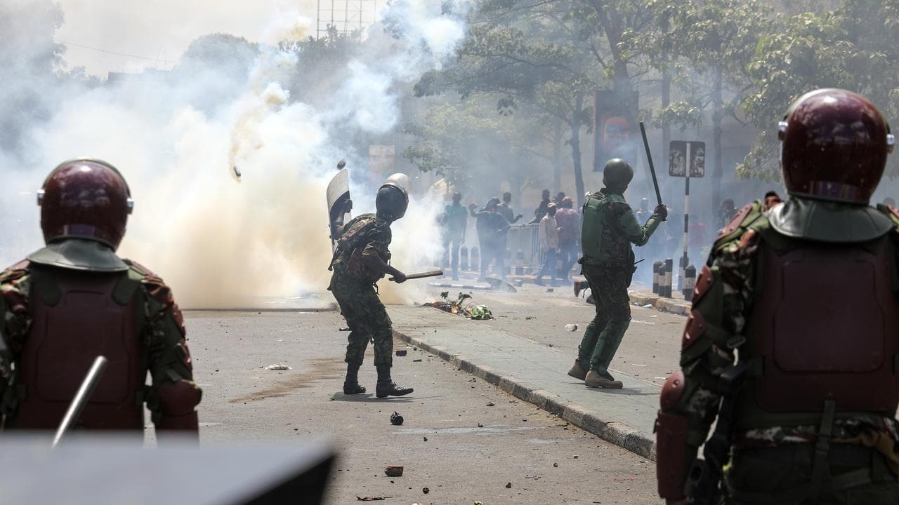 Police have opened fire on demonstrators trying to storm Kenya's parliament, with at least five protesters killed, dozens wounded and sections of the building set ablaze as MPs inside passed legislation to raise taxes.