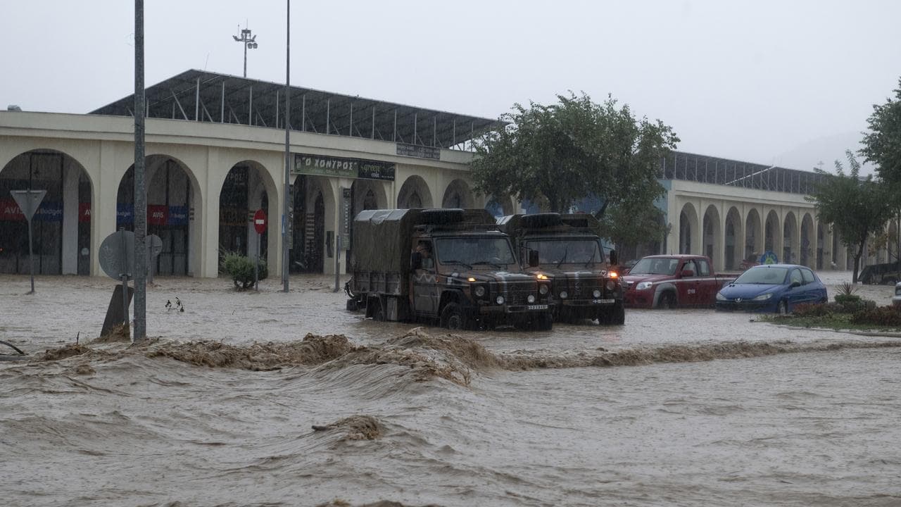 In Greece, a record rainfall caused at least two deaths near the port city of Volos and three people were reported missing. The fire department said one man was killed when a wall buckled and fell on him, and the body of a woman was discovered on Wednesday.