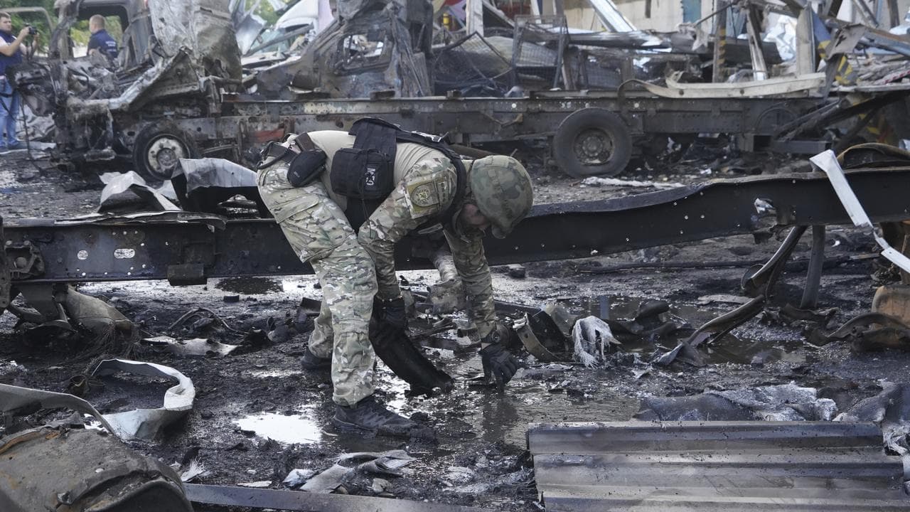 Regional Governor Oleh Synehubov said nine people were injured, including an eight-month-old infant. Pictures posted online showed the depot and trucks outside it badly damaged.