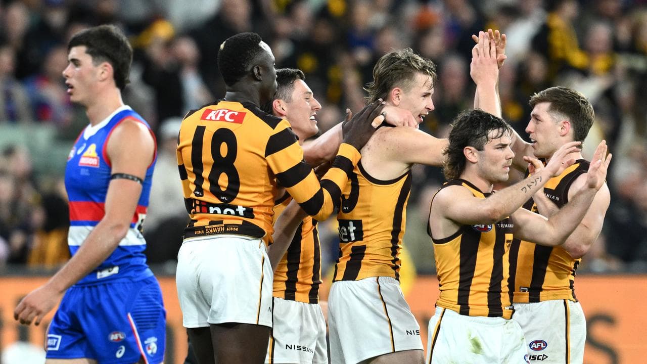 Hawks livewire Jack Ginnivan, who courted criticism with a trip to a Richmond pub the night before the game, was creative and celebrated kicking the sealer midway through the final term by miming opening and drinking a can of beer.