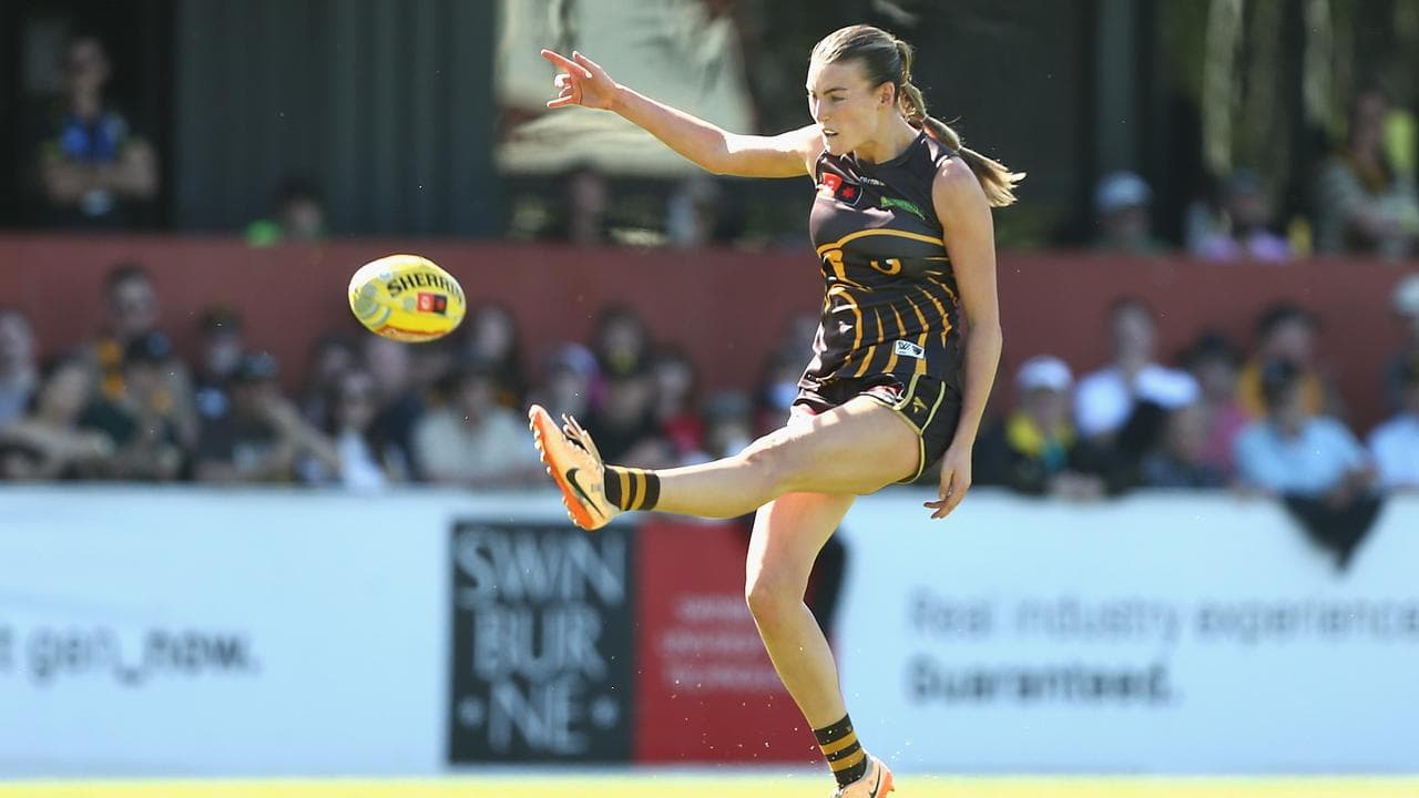 Aine McDonagh kicked two goals for Hawthorn in their nine-point win over Collingwood. (Rob Prezioso/AAP PHOTOS)