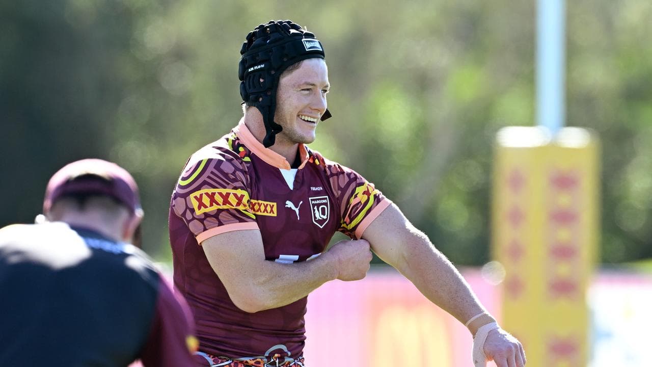 But on Thursday, donning headgear to protect a fresh Origin scar, Grant was all smiles as he completed a session that included a full-contact hit-out against Queensland Cup outfit Wynnum-Manly.