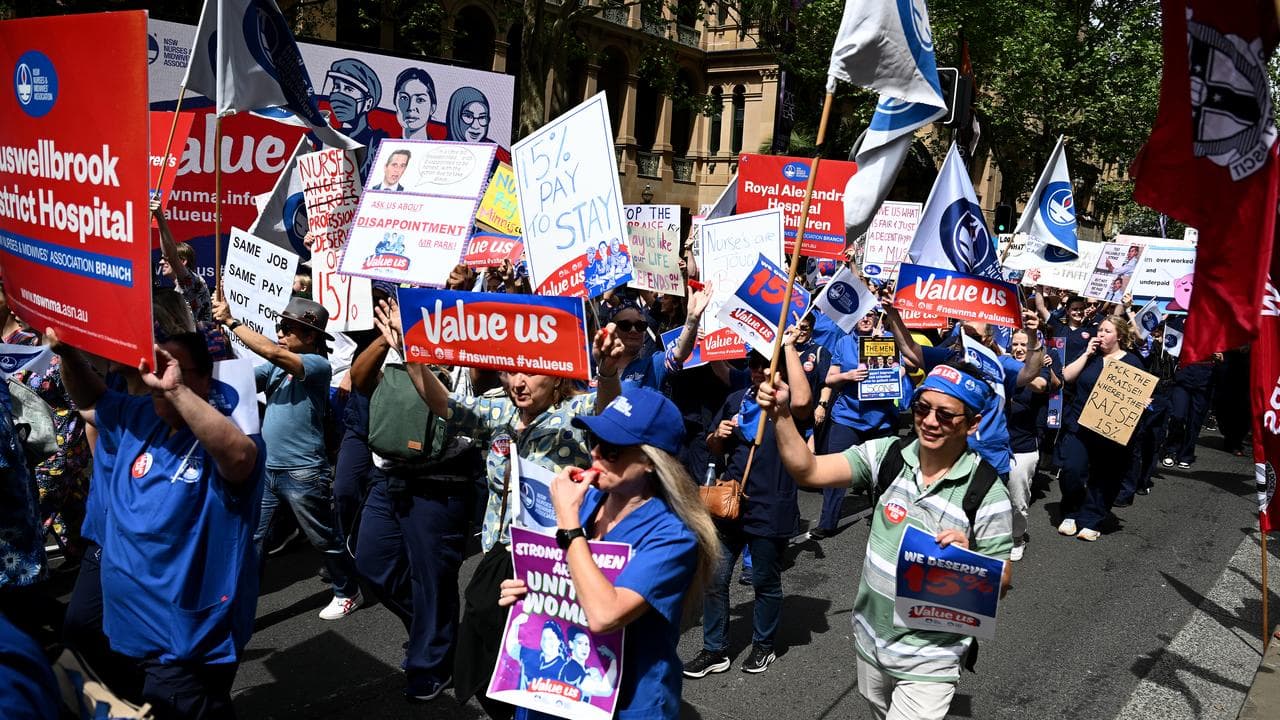 In the largest rally against the Labor government since coming to power in March 2023, at least 5000 nurses and midwives took to the streets in September over wage negotiations.