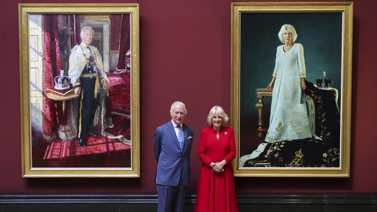 The portrait of Charles, in his robe of state standing beside the Imperial State Crown, and one of his wife, Queen Camilla, were unveiled by the royal couple at London's National Gallery on Tuesday and will be displayed for a month before being moved to Buckingham Palace, their permanent home, Buckingham Palace said on Tuesday.