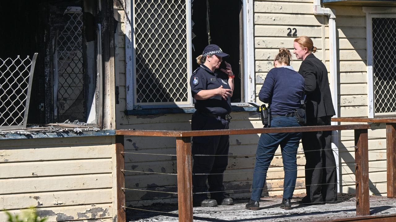 The Toowoomba house has been declared a crime scene with police treating the fire as suspicious, calling in homicide detectives.