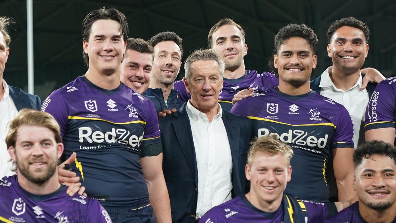 The Storm thrashed the Dolphins 48-6 at AAMI Park on Saturday night to seal top spot on the ladder, with their closest rivals Penrith shock losers to Canberra earlier in the day.