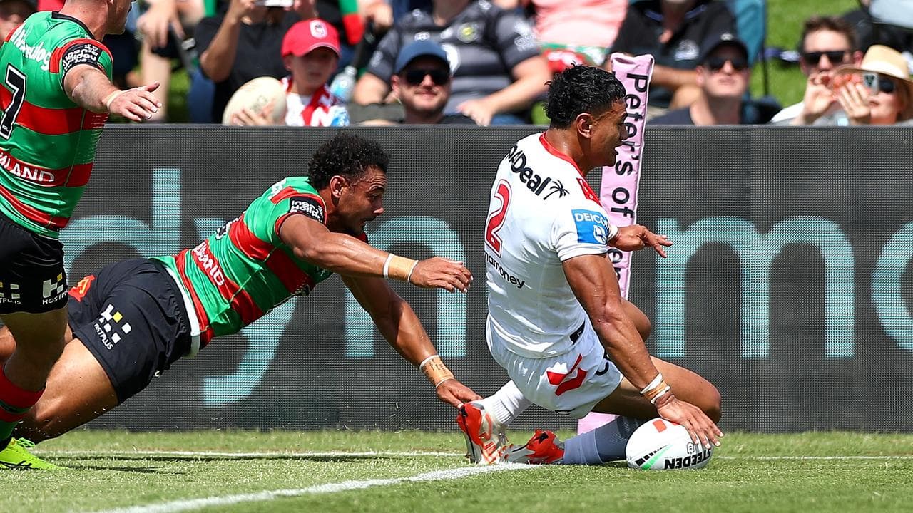 Tries for Ilias, Mathew Feagai and Finau’s quadruple put the Dragons in the box seat in the first half before livewire fullback Jye Gray helped Souths get on the board.