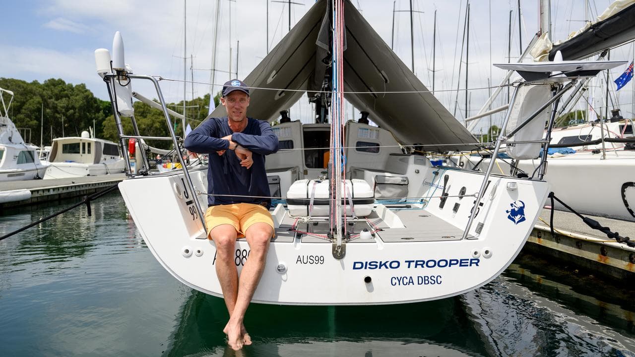 Disko Trooper_Contender Sailcloth mightn't be as small as some of the dinghies they've sailed, but at 32ft she is one of the Hobart fleet's smallest boats, dwarfed by the four 100ft supermaxis.