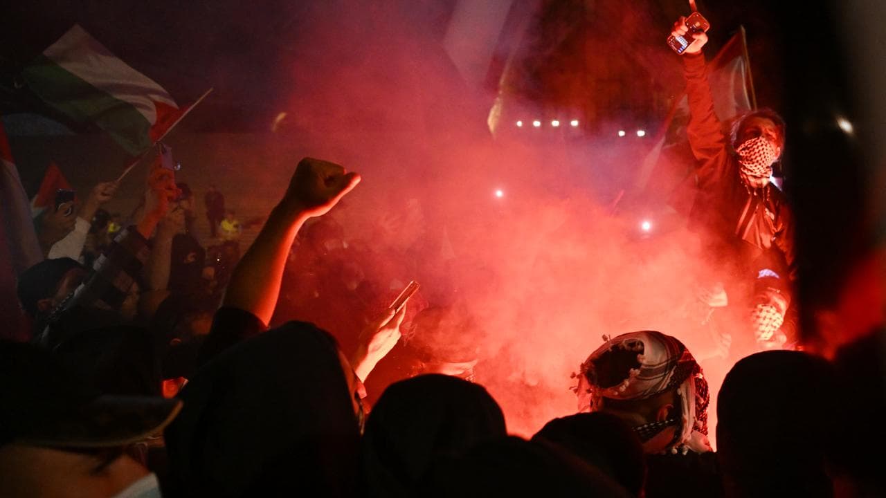 The march took place two days after the Hamas attack on Israel on October 7, 2023. Attendees descended on the Sydney Opera House which had been turned blue and white in solidarity with Israel.