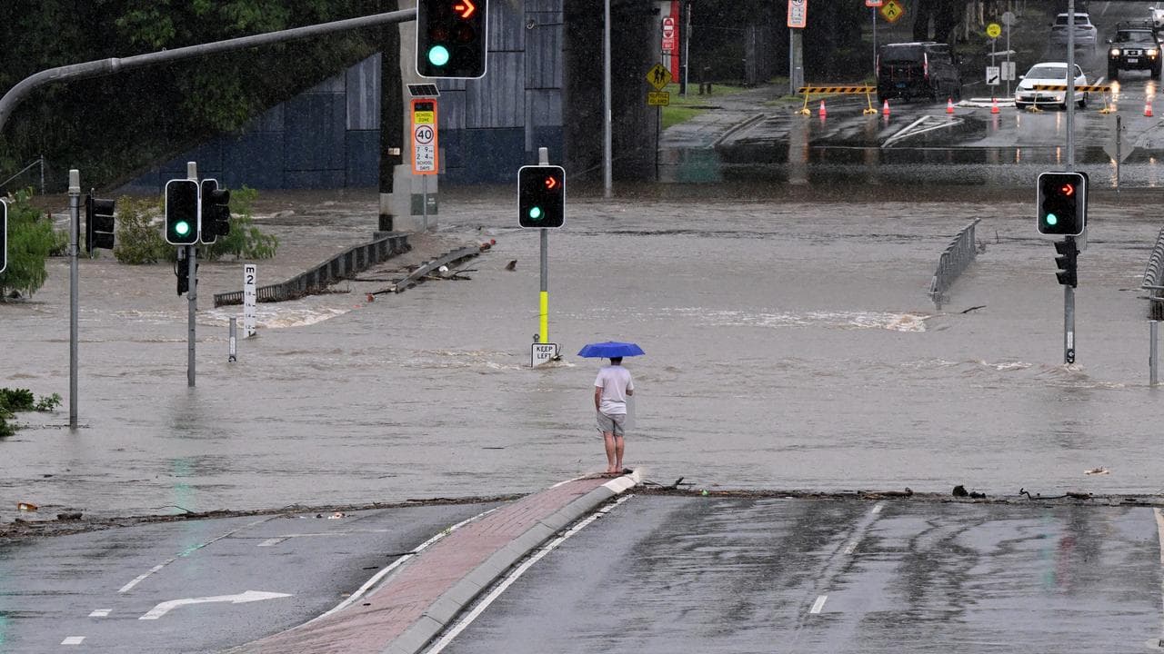 In parts of Brisbane roads and lowlands were under water and suburban waterways overflowed.