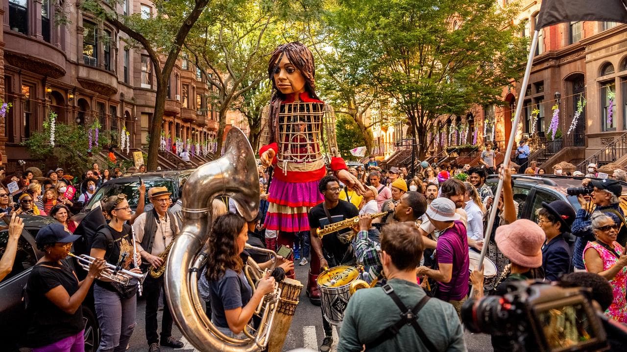 Palestinian theatre director Amir Nizar Zuabi, who worked with a team of producers to bring the complex sculpture to life, says the puppet is aimed at humanising the refugee story to be one of community potential and hospitality.