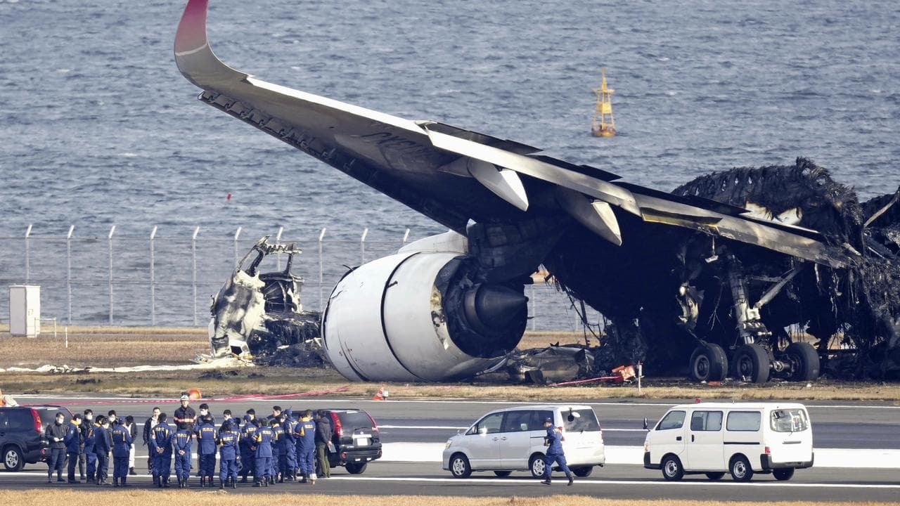 All 379 people on board the flight escaped the burning airliner after it collided with a coast guard patrol plane on the runway on Tuesday.