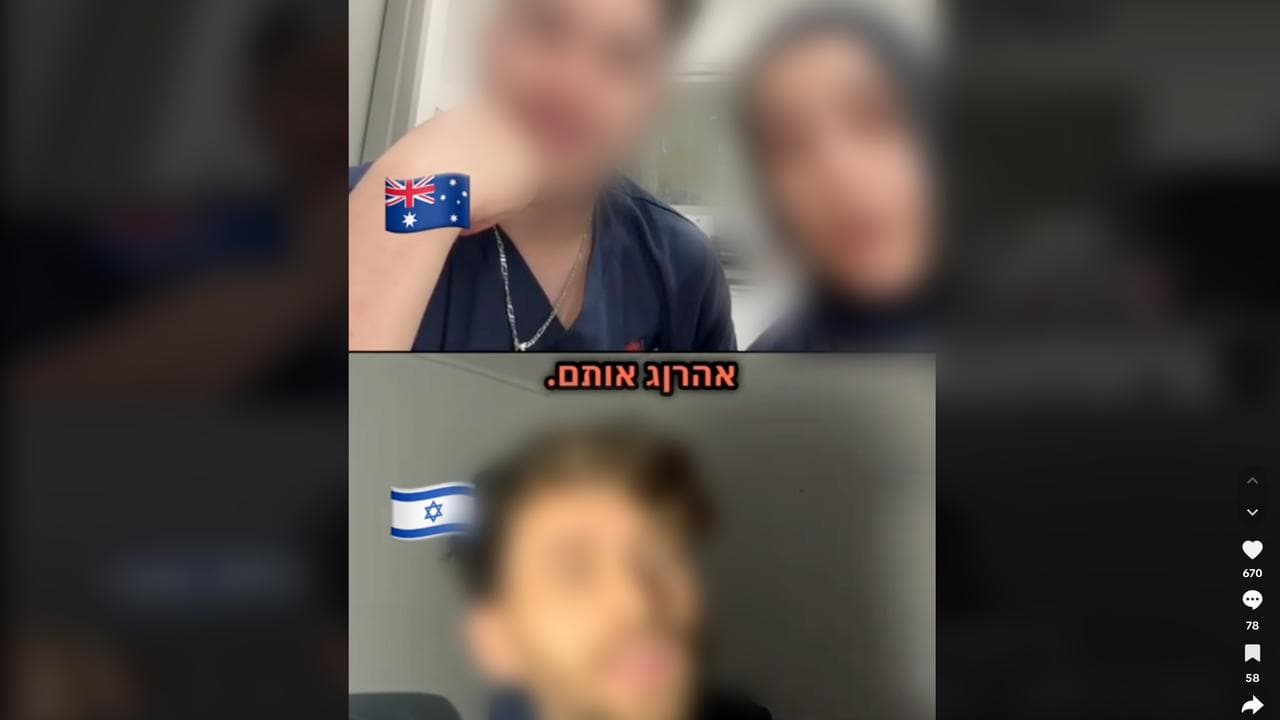 In a video shared by an Israeli influencer, one nurse in a NSW Health uniform boasts of sending Israeli patients to hell while another says "I won't treat them, I'll kill them."