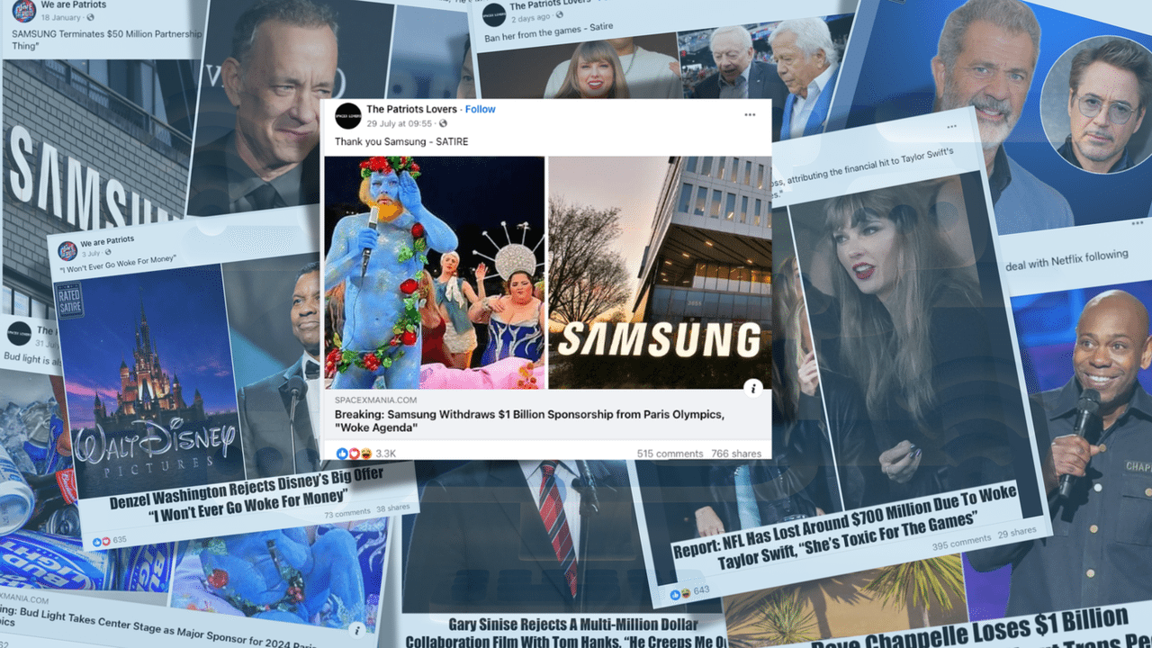 Recently published fake stories include Samsung pulling its Olympics sponsorship over the “woke” opening ceremony in Paris, transgender swimmer Lia Thomas being thrown out of a gym and basketball great Michael Jordan describing “wokeness” as a “mind destroyer”.