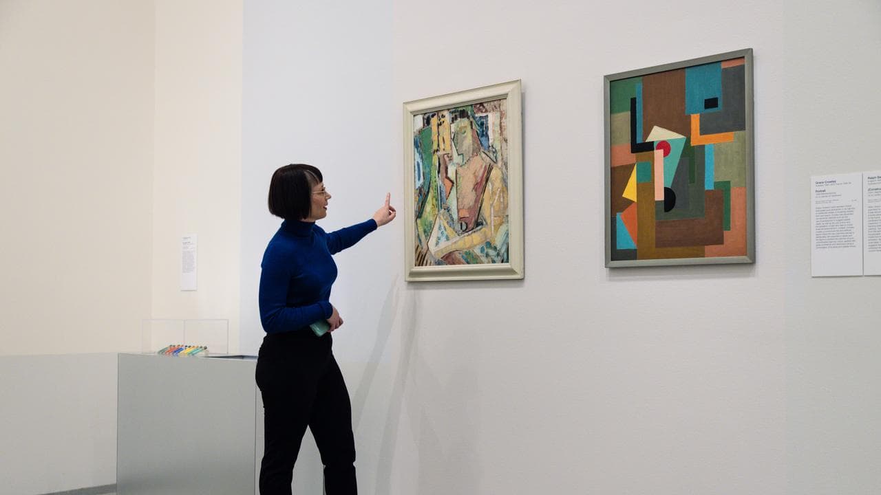 Crowley's semi-abstract Portrait has been in the gallery's collection since 1981, but it was not until Rozentals and her colleague, conservator Raye Collins, examined the painting in 2020 that they discovered more than meets the eye.