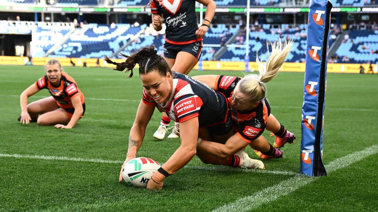 The Tigers looked likely once in position but struggled to make it through resolute Roosters' defence up-field - missing halfback Emily Curtain to injury did not help their bid to gain the ascendancy.
