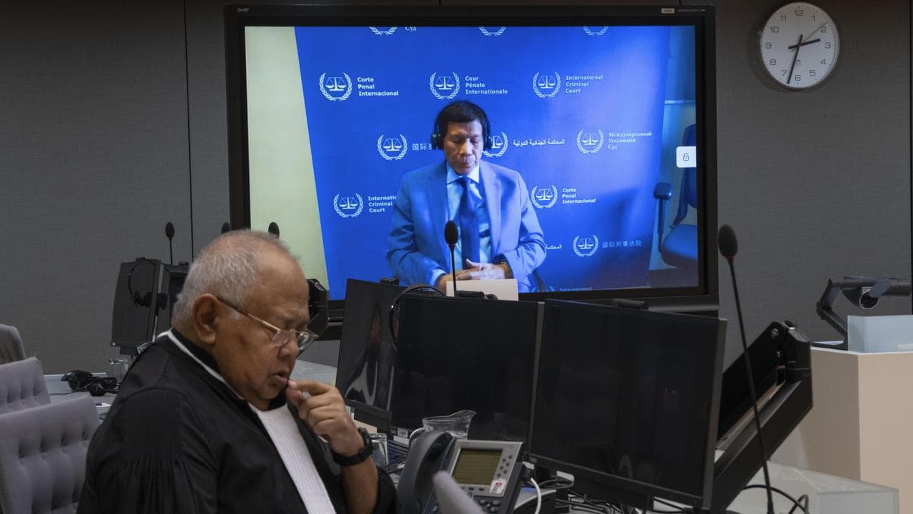The 79-year-old Duterte didn't show up at the court in The Hague as expected on Friday, but appeared on a video screen from the detention centre where he is being held, about one-and-a-half kilometres away.
