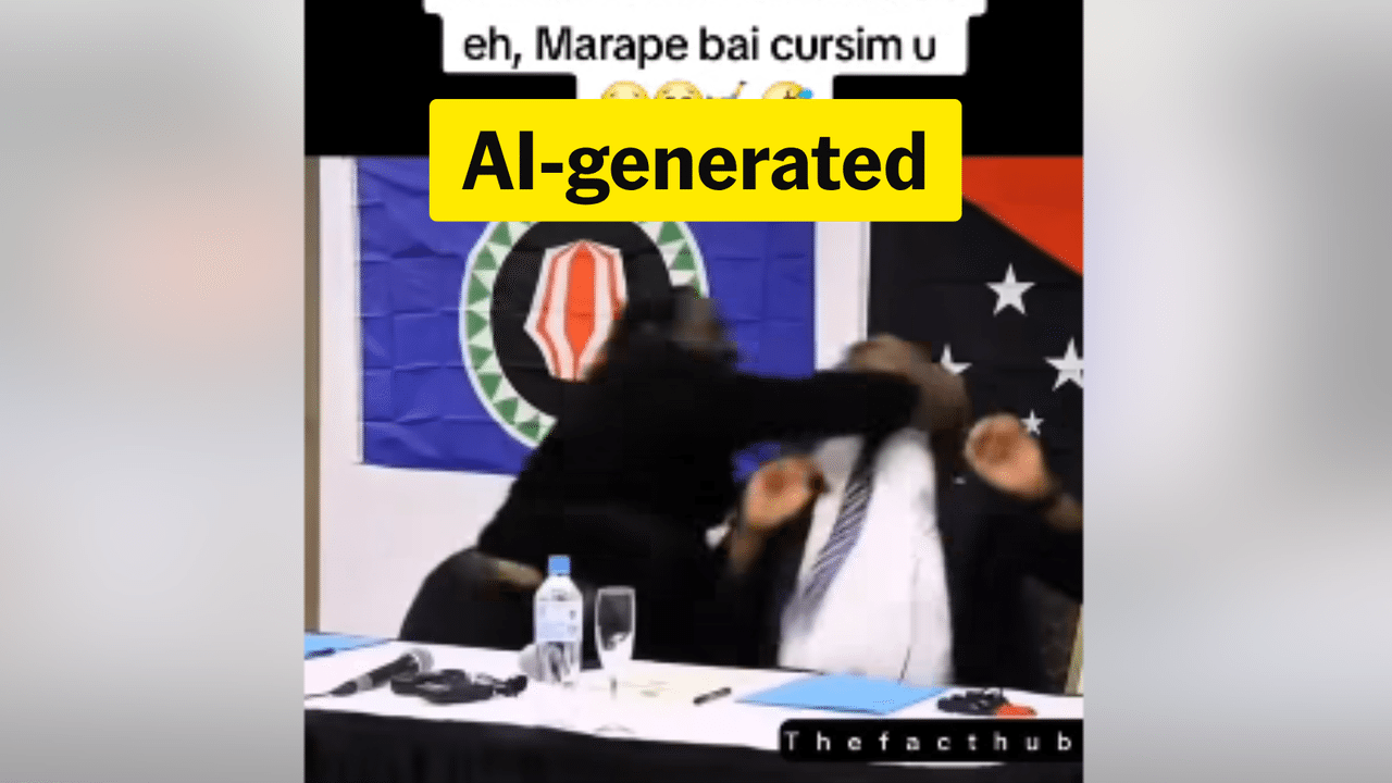 AAP FACTCHECK - A fake video depicting a physical altercation between leaders of Papua New Guinea and the aspiring nation of Bougainville is spreading online.