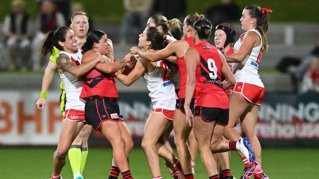 Star AFLW midfielder Maddy Prespakis is among seven players who have been slapped with fines for taking part in a heated melee between Essendon and Sydney.