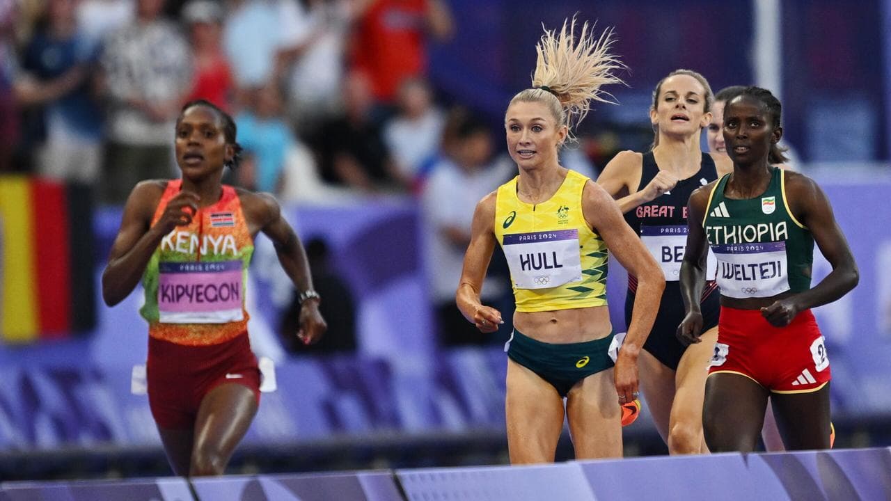 It didn't quite happen in Saturday's Olympic 1500m final, but it took all the great Kenyan Faith Kipyegon had to hold the Australian off and claim an unprecedented third-straight Olympic title.