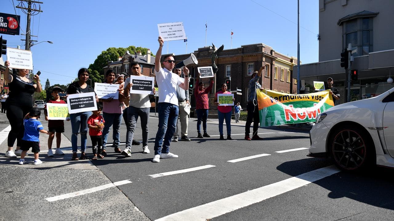 Dozens of asylum seekers on years-long temporary visas are protesting at Prime Minister Anthony Albanese's electorate office in Sydney calling for permanent residency.