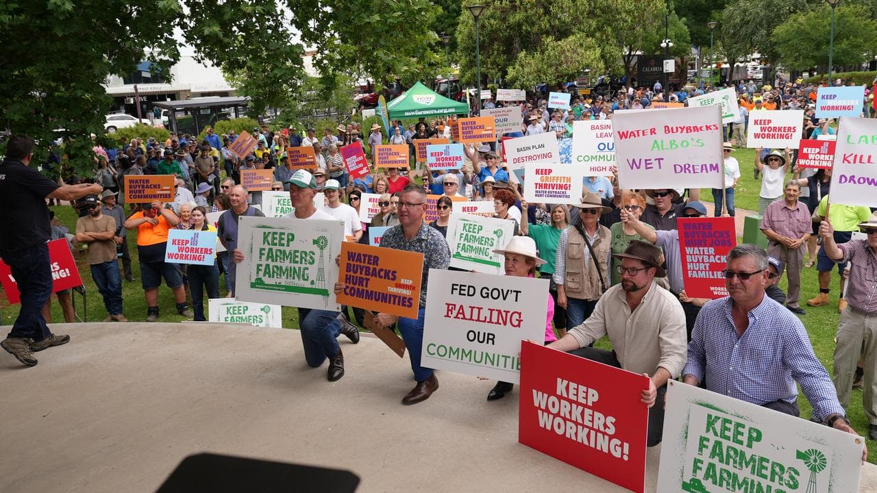 Protesters are opposed to changes to the Murray-Darling plan that will result in further buybacks taking water away from agricultural use.